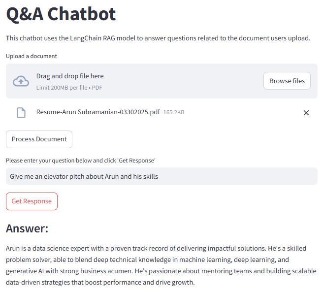 Alright, you've uploaded your document and seen that reassuring "processed successfully" message. Now comes the fun part: getting some answers! You type your question into that friendly text box in our Streamlit app and then, with anticipation, you click that "Get Response" button. Let's peek under the hood and see what happens next!