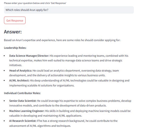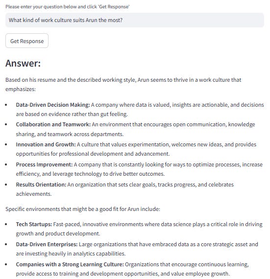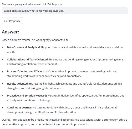 input_text = st.text_input("Please enter your question below and click 'Get Response'")Backend brain in action: Retrieval and Generation: