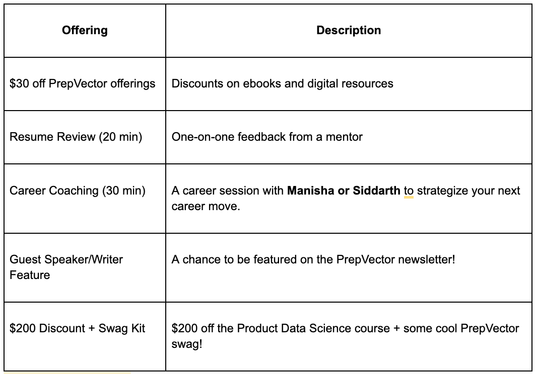 This newsletter is your quick guide to everything happening inside PrepVector—mentorship, events, career resources, and more. Let’s dive in!